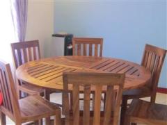 - a dining area with table and chairs